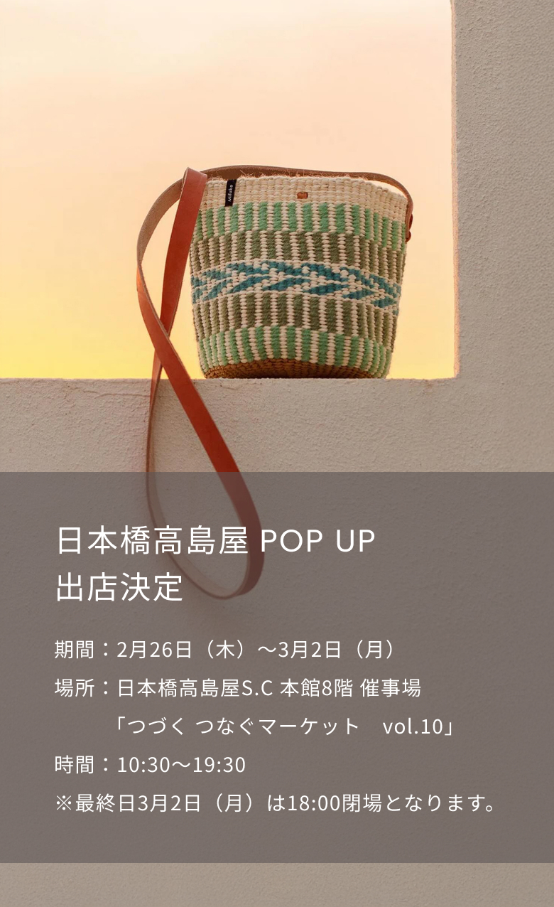 Mifukoの製品はすべて、アフリカの伝統的な織りの技術を用い、ひとつひとつ手作しています。