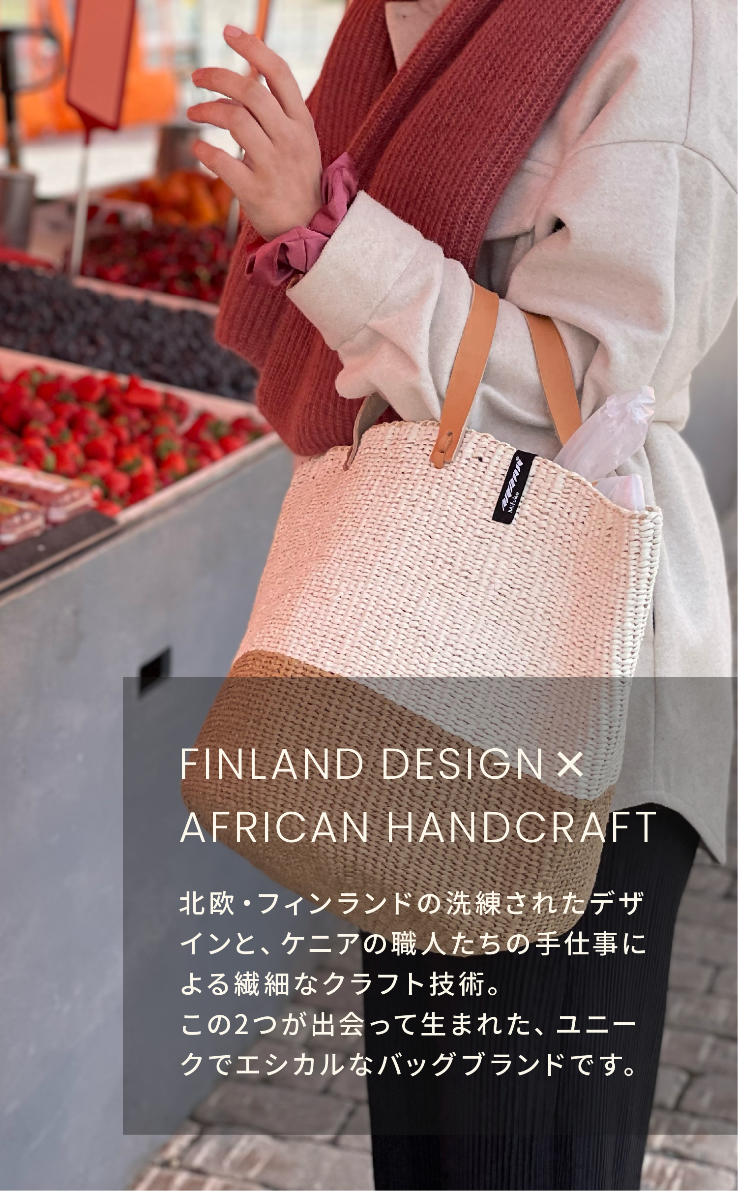 2009年、フィンランド人デザイナーであるMari Martikainen (マリ・マルティカイネン)と Minna Impiö(ミンナ・インピオ)の二人は、ケニアのナイロビの市場で職人たちの素晴らしい手仕事に心を奪われました。その魅力を世界に伝えたいと「Mifuko」を設立。